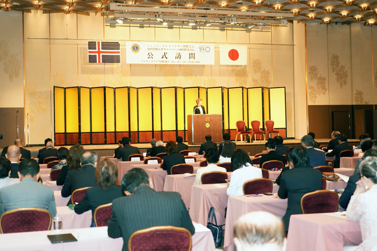 午後2時、光琳の間において公式訪問が始まり、参加者は手に手にアイスランド国旗を持ち、国際会長のテーマソングでご夫妻を迎えた。イングバドダー国際会長は、国際会長テーマ「ウィ・サーブ」と「地平線の彼方」というキー・フレーズ、そして「力を合わせれば、限界を越えられる」という意味のアイスランドの言葉「セッタ・レッダスト」について語り、努力と信頼、団結により目標は必ず達成出来ると話した。