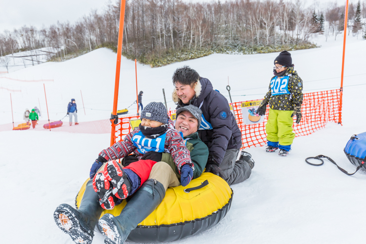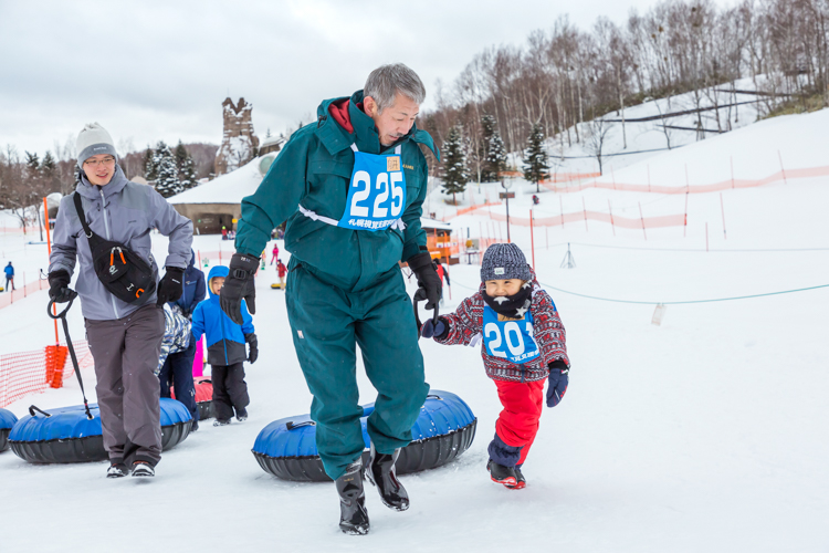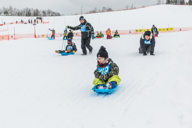 目の見えない子どもたちにとっては、一人でチューブを引いて山を上るのは難しい。そこでライオンズの出番だ。スノーチューブに子どもを乗せ、斜面を上っていく。滑り降りる際も一緒に乗り込み、子どもたちを抱いてチューブから落ちないようにする。上るのは大変だが、下るのはわずか20秒ほど。大はしゃぎの子どもたちに何度もチューブそりを経験させてあげようと、メンバーは上っては下るを繰り返して汗だくになっていた。