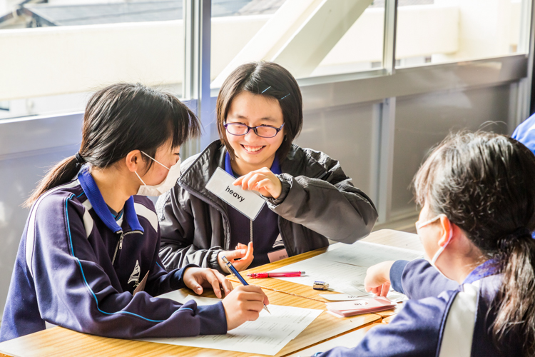 スポーツの授業ではバスケットボールから派生した競技、ネットボールを行った。ネットボールは簡単に言えばパスだけでボールをつなぐバスケットボールで、ポジションごとに役割が決められている。他校の生徒とチームを組んでプレーするため、自然とコミュニケーションも生まれる。つい日本語が出てしまう子もいるが、何とか英語で話そうと努力する姿がほほ笑ましい。