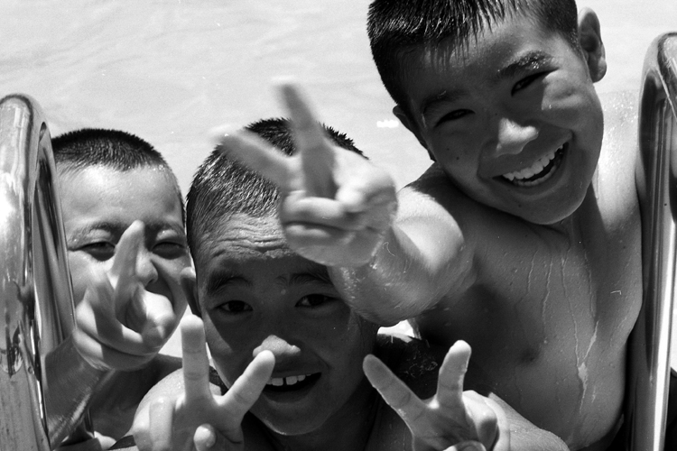 73年6月、302W複合地区大会で沖縄復帰記念事業として沖縄こどもの国にライオンズ広場・ジャブジャブ池を寄贈することが決議された。建設された丘陵地は、東に太平洋、西に東シナ海を眼下に一望出来る絶景スポットだ。25mプールとその周囲に200人分の観覧席、小学校低学年用のL型プール、幼児用の丸型プール3基、身体障害者用プール、その他に滑り台、水遊び場、ドロンコ池、更衣室、シャワー室、トイレなどが完備された。それまで沖縄県内にはプール施設のある学校は無かったそうで、意外にも泳げない子どもも少なくなかったという。ライオンズ広場・ジャブジャブ池の贈呈式が行われた73年6月28日、先生に引率されてやってきた小学生は、初めてのプールに少しの不安と大きな期待で目を輝かせた。この日は水に慣れることがテーマだったが、しばらくすると大はしゃぎする子どもたちの元気な声が、真っ青な空の下、高らかに響き渡った(73年9月号)。
