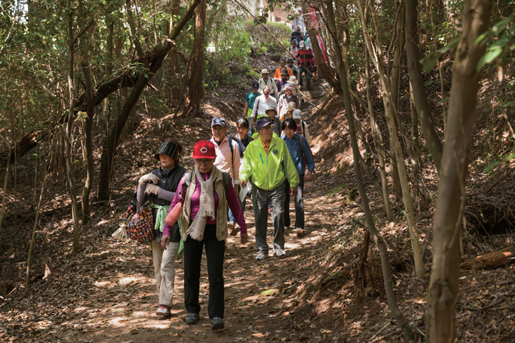 歩くコースは年によって変わるため、毎年参加する人も少なくない。昨年はあいにくの小雨だったが、多くの人が集まり東広島市の西条町寺家を中心としたコースを歩いた。テーマは「変わる寺家~昔と今~」。「寺家」と書いて「じけ」と読む。2000年以前は農地が多かったが、スーパーやカラオケ店などが開業し、近年、人口が増えて町が大きく変化している場所だ。
