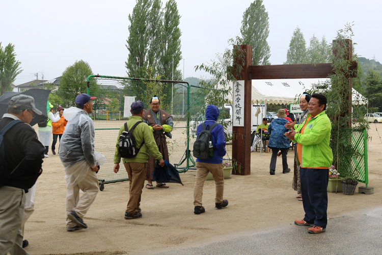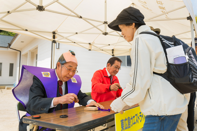 東広島ライオンズクラブ(藤原富雄会長/46人)も歩く会に協力をしている団体の一つである。この催しでは歩くコース上に「関所」と呼ばれるチェックポイントが6カ所あり、そこで押してもらう通行手形を集めてゴールすると、記念品を受け取れるシステムになっている。東広島ライオンズクラブは関所の一つを担当し、毎年メンバーが侍に扮装して参加者を迎えている。他にも東広島ウエスト ライオンズクラブが別の関所を担当し、共にイベントに貢献している。また、東広島ライオンズクラブでは毎年、広島大学に通う留学生を招待している。クラブ・メンバーの半数が関所で参加者を出迎え、もう半数が留学生と全行程一緒に参加するのが通例だ。