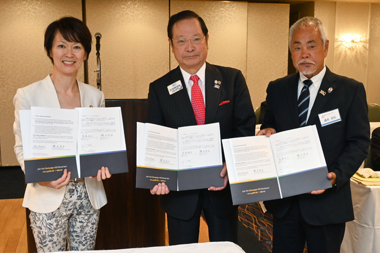 6月17日、愛知県名古屋市のキャッスルプラザにおいて、公益財団法人スペシャルオリンピックス日本(SON/有森裕子理事長)とライオンズクラブ国際財団(LCIF/グドラン・イングバドター理事長)、一般社団法人日本ライオンズ(識名安信理事長)の第2期協力提携に関する覚書が取り交わされた。同会場で開かれた2019-20年度第4回全国ガバナー会(社員総会)の開会に先立ち、有森SON理事長と識名理事長、証人として山田實紘LCIF副理事長が覚書に署名した。