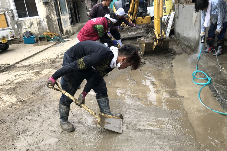 今回の災害の厄介な特徴は、新型コロナ流行中に発生したということである。感染予防対策をしつつ災害支援活動を進めていかなくてはならない、初めてのケースとなった。そのため、人吉市は受け入れボランティアを県内在住者のみとしている。そしてもう一つの特徴は、被災地の住民が高齢化しているということ。この二つの特徴から、慢性的な人出不足となっているのが現状である。