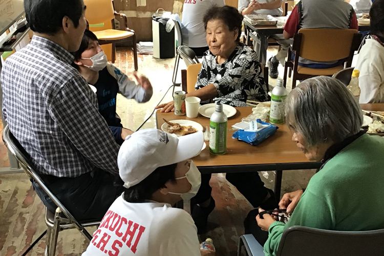 9月の活動では、球磨村の神瀬地区に入った。この地区にはお年寄りが多く、片付けがあまり進んでいなかった。生徒たちは民家の泥出しや清掃を精力的に行い、神瀬地区のお年寄りから大変感謝されていた。最後はお年寄りの話し相手にもなり、女子生徒のきめ細やかなボランティア精神に感服した。