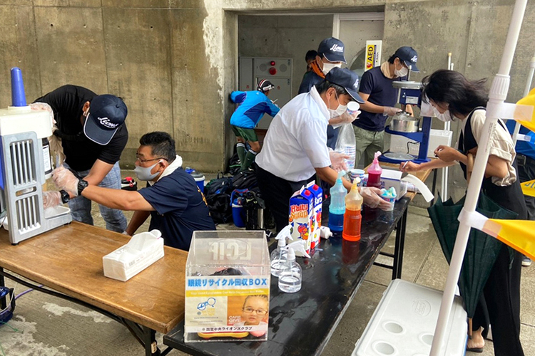 当日は出雲市立高松小学校のスポーツ少年団(野球・サッカー・バレーボール・バスケットボール・ドッジボール)の練習を訪問し、約300人にかき氷を振る舞った。子どもや保護者たちは「今年初めてかき氷を食べました」「夏休み最後にありがとうございます」など、喜びの表情で語ってくれた。また事前に保護者に呼び掛けをしていた中古眼鏡リサイクル回収も行ったところ、たくさんの方のご協力で回収箱がいっぱいになった。
