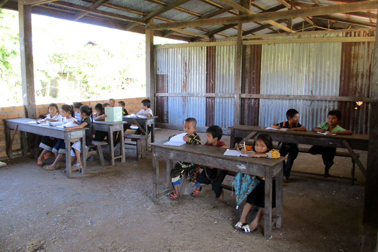 16年11月、支援先を決めるためにメンバー7人がラオスを訪問。DEFCの現地スタッフの案内で、首都ビエンチャンから車で約6時間のカムクート郡にある2カ所を訪れた。1校目はポーンタン村にあるカムクート中・高校で、遠隔地の生徒のために寮の建設を必要としていた。郡内には小学校は増えているものの、中・高校は数が少なく、遠隔地の子どもは進学を断念するか、遠距離通学や下宿をしなければならない。新しい寮が出来ればより多くの生徒が教育を受けられるということだった。もう1校はナーパワーン村のナーパワーン小学校で、校舎はトタン屋根で壁がなく、強風や降雨時は授業を行えない状況にあった。