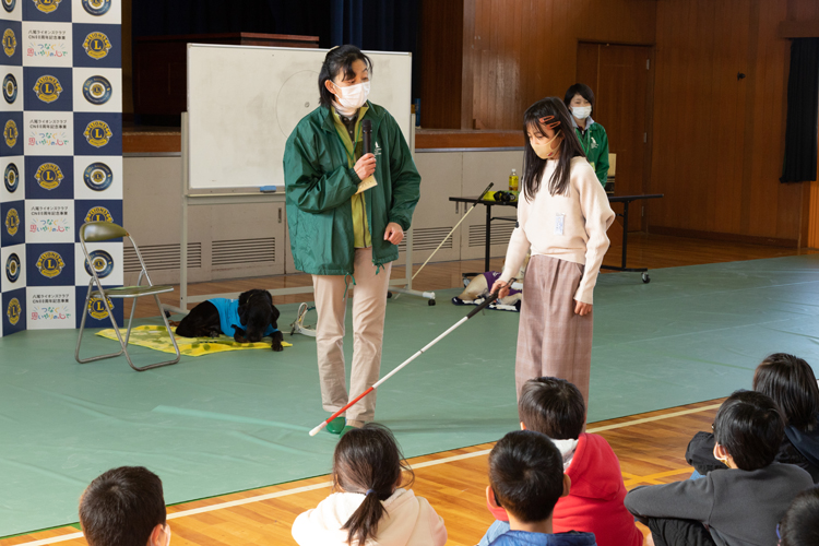 本来なら出来るだけ多くの人に広めたいところだが、新型コロナウイルスの影響を鑑み、当初の予定よりも規模を縮小し、場所を変更するなど感染対策を取って実施することにした。こうして計画が進み、10月10日に行った視覚障害者セミナーを皮切りに、11月には資金獲得事業としてゴルフコンペを開催。収益を盲導犬の育成に役立ててもらうための資金として寄付した。更に11月14日には複合商業施設アリオ八尾でセミナーを行い、多くの市民に盲導犬や視覚障害者について理解してもらった。そして12月からは幼稚園や小学校での出前授業を実施。12月2日に認定こども園志紀学園幼稚園で、1月29日には八尾市立曙川小学校で行った。