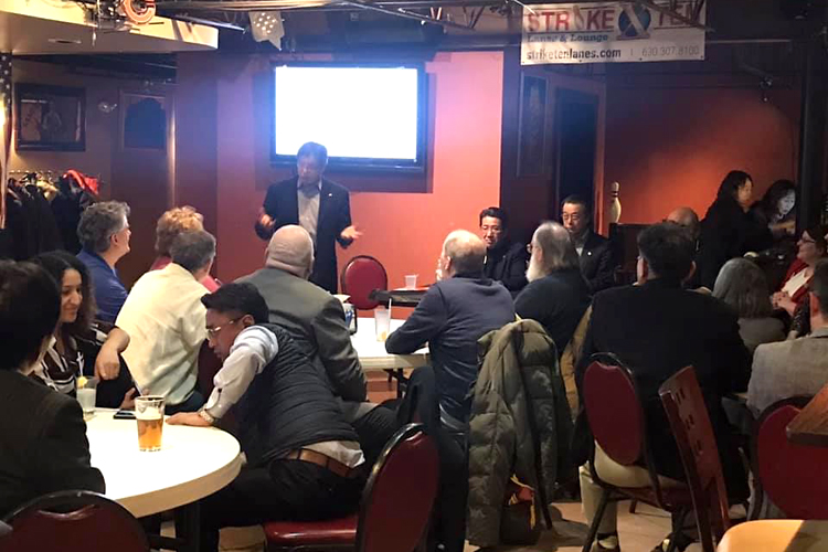 初日は国際本部見学の後、フランク・ムーア事務総長兼幹事の歓迎あいさつに始まり、レベッカ・ダウLCIF事務総長からキャンペーン100や交付金に関する説明があった。各レベルのリーダーがキャンペーンの成功のためになすべきことを考えさせられるものであった。その後、ボウリング場を会場に開かれたシャンバーグ・ホフマン ライオンズクラブの例会を訪問。ピザをつまみながら共にボウリングに汗を流した。例会の中では330-A地区の進藤義夫第2副地区ガバナーが、日本のクラブの奉仕活動やメンバー交流についてユーモアを交えたプレゼンテーションを行った。