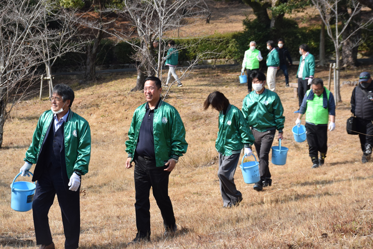 大牟田ライオンズクラブ(古川欽也会長/65人)は2月9日、大牟田市北部の丘陵地にある甘木公園で、桜への施肥を行った。当クラブと桜は縁深いものがある。始まりは1960年、浩宮徳仁様(現在の天皇陛下)のご誕生を記念して、甘木公園で100本の桜を植樹した。以来クラブ結成の周年記念等に追加の植樹を続け、また毎年2月の第1定例会の際に施肥を行うようになった。今では甘木公園には春になると、当クラブが植えた数百本を含め9000本もの桜が咲き誇り、市内外から訪れる多くの皆さんを楽しませている。